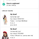 Шарф My Scarf (208695749), Шарф My Scarf (208695722), Шпилька (3 шт.) My Scarf (183989405), Шпилька (3 шт.) My Scarf (183989413), Хустка My Scarf (198710221), Шарф My Scarf (199391983), Шарф My Scarf (199391941), Хустка My Scarf (218325373), Ланцюжок для окулярів My Scarf (229077279), Хустка My Scarf (229077314), Ланцюжок для окулярів My Scarf (229077374), Шпилька My Scarf (235676642), Ланцюжок для окулярів My Scarf (235676649), Шарф My Scarf (235676686), Ланцюжок для окулярів My Scarf (235676682), Шарф My Scarf (250129895)