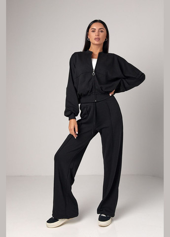 Товари, цікаві для покупців спортивний костюм з прямими штанами та кофтою на блискавці - чорний Lurex (300591759) на сезон "Демісезон"