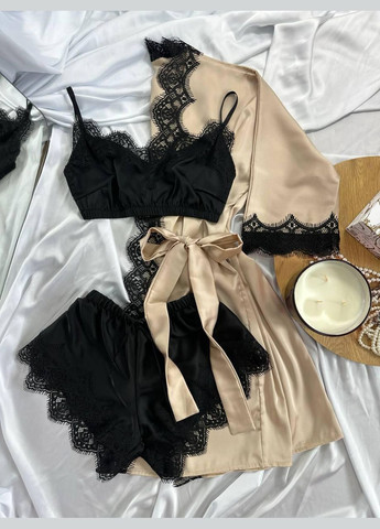 Ghazel шовковий домашній комплект шортики+майка+халат шовк сінді трійка топ + шорти однотонний чорний домашній штучний шовк виробництво — Україна бренда Ghazel також купляють з такими товарами