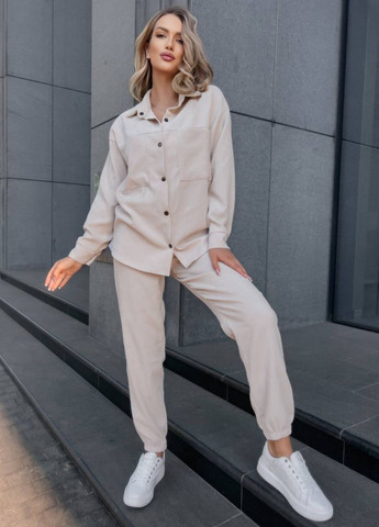 Товари, цікаві для покупців tik-Tak базовий повсякденний вельветовий костюм двійка: сорочка на кнопках + штани на резинці брючний однотонний рожевий вельвет виробництво — Україна на сезон "Демісезон"