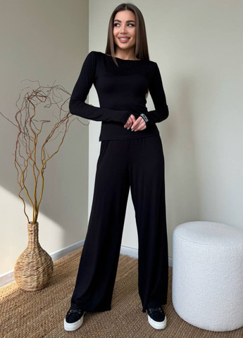 Товари, цікаві для покупців tik-Tak базовий повсякденний костюм двійка: приталений лонгслів + штани палаццо брючний однотонний молочний віскоза виробництво — Україна на сезон "Демісезон"