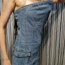 Товари, цікаві для покупців sHEIN синя джинсова сукня з відкритими плечима однотонна без рукава бавовна — виробництво Китай на сезон "Літо"