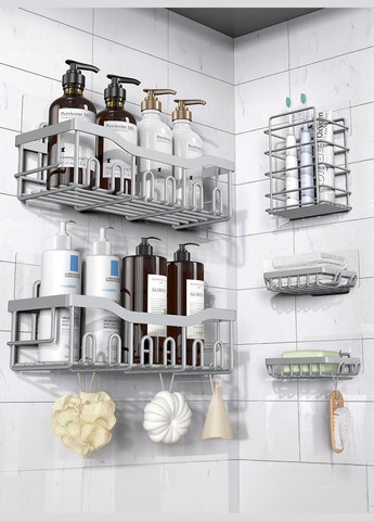 Набір тримачів для ванної кімнати з 5 шт. / полиця у ванну навісна з нержавіючої сталі / вакуумні тримачі для шампунів у душ OnePro (329145838) бренда OnePro також купляють з такими товарами