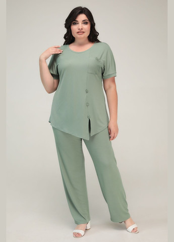 Товари, цікаві для покупців a'll Posa жіночий костюм-двійка з трикотажу рубчик (брюки +асиметрична футболка) all posa (ap101582p) зелений виробництво — Україна на сезон "Літо"