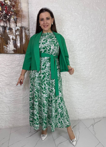 Товари, цікаві для покупців tik-Tak жіночий комплект із сукнею з софту та лляним жакетом із поясом з сукнею з абстрактним візерунком синій льон, софт виробництво — Україна на сезон "Літо"