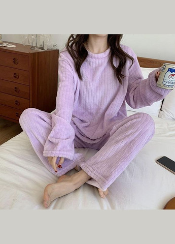 Товари, цікаві для покупців no Brand Піжама в рубчик брючна з кофтою фіолетова піжама в рубчик комплект брюки кофта тепла м`яка оверсайз на зріст до 166см світшот + брюки однотонний блакитний повсякденний, денім, домашній виробництво — на сезон "Зима"