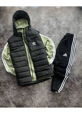 Товари, цікаві для покупців україна костюм adidas трійка туреччина,штани,кофта з капюшоном та жилетка з капюшоном чорний виробництво — на сезон "Демісезон"