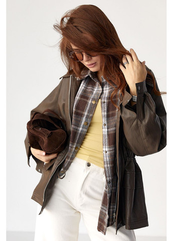 Топ товарів у категорії верхній одяг, які цікаві покупцям lurex подовжена жіноча куртка зі шкірозамінника - коричневий колір бежева кежуал виробництво — Україна