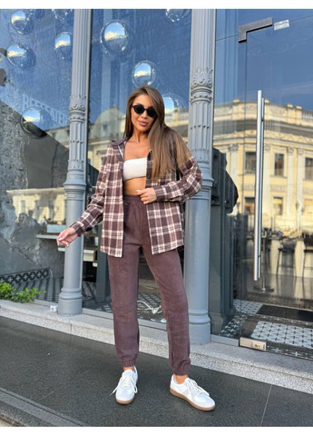 Товари, цікаві для покупців avanti жіночий костюм з сорочкою та штанами брючний в клітинку бордовий фліс, байка виробництво — Україна на сезон "Демісезон"