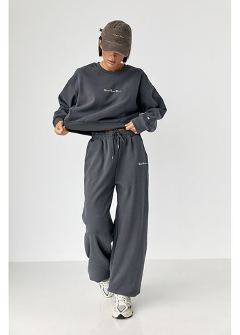 Товари, цікаві для покупців спортивний костюм з плюшевим начосом з коротким світшотом та брюками палаццо Lurex (361432579) на сезон "Демісезон"