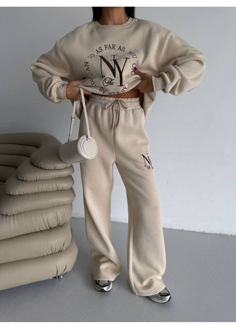 Товари, цікаві для покупців україна костюм двійка тринитка на флісі худі та штани палаццо,з накатом на грудях коричневий виробництво — на сезон "Демісезон"