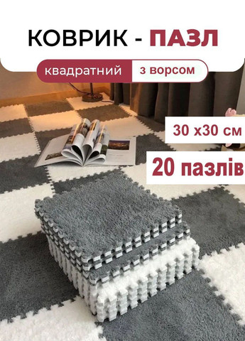 Коврик - пазл 20 пазлів з плюшевим покриттям 30х30х1.5 см не ковзає сірий з білим Good Idea (365602114) бренда Good Idea також купляють з такими товарами