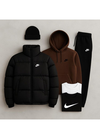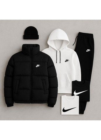 Топ товарів у категорії спортивні костюми та комплекти, які цікаві покупцям комплект 5в1 ФЛІС (шапка+худі+штани+футболка БІЛА +пуховик) No Brand (369112384)