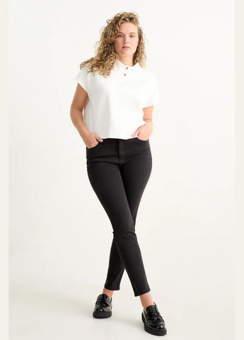 Класичні штани із завищеною талією та складками зверху. Ширинка на блискавці із застібкою на гачок і потайним гудзиком. Діагональні бічні кишені та несправжні задні кишені. Широкі, прямі штанини зі складками. Розмір європейський.