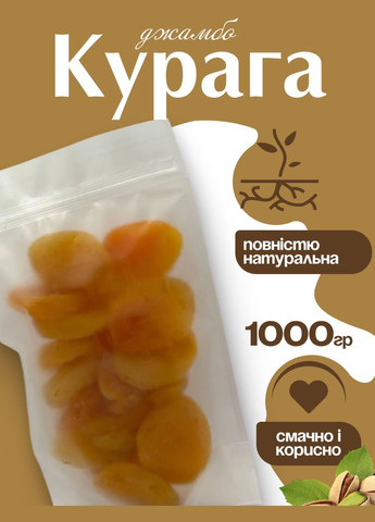 Курага Джамбо в пакет пакеті Курага Джамбо – це натуральний продукт, багатий клітковиною, вітамінами A, C, групи B, калієм, магнієм, залізом, кальцієм та антиоксидантами. Вона допомагає зміцнювати імунітет, підтримувати здоров’я серця та покращувати обмін речовин. Калорійність Енергетична цінність – 232 ккал на 100 г. Курага містить натуральні цукри та вуглеводи, які надають організму швидку енергію. Користь кураги Джамбо Підтримує здоров’я серця і судин завдяки високому вмісту калію. Покращує травлення, нормалізуючи роботу кишківника завдяки клітковині. Зміцнює кістки і зуби, насичуючи організм кальцієм і фосфором. Сприяє нормалізації рівня гемоглобіну, запобігаючи анемії завдяки вмісту заліза. Виводить токсини та зайву рідину, допомагаючи організму очищатися. Сприятливо впливає на шкіру, насичуючи організм антиоксидантами та вітамінами. Способи вживання Курагу Джамбо можна вживати у чистому вигляді як корисний перекус, додавати до каш, мюслі, йогуртів, випічки, десертів та салатів. Вона також добре поєднується з горіхами, медом і сиром. Упаковка та зберігання Продукт постачається у зручному zip-пакеті, який зберігає свіжість, м’якість та аромат кураги, захищаючи її від вологи та сторонніх запахів. Рекомендується зберігати у сухому, прохолодному місці, подалі від прямих сонячних променів. Курага Джамбо – це натуральна насолода, наповнена вітамінами та користю!