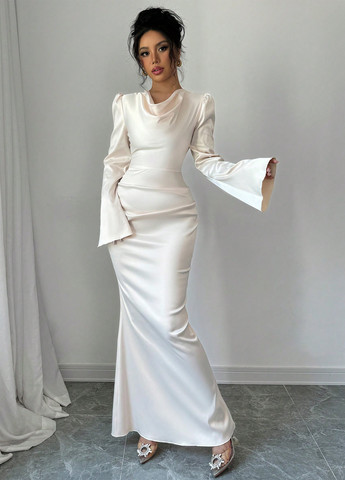 Матеріал Поліестер / Колір Світло-бежевий / Фасон Сукня-водолазка, Футляр / Довжина виробу Міді та нижче коліна / Стиль Святковий, Вечірній