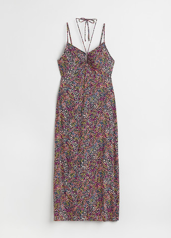Сарафан з крепу до литок з вирізом спереду та ззаду. Сукня має V-подібний виріз зі шнурком і вузькими лямками, які зав'язуються ззаду. Прикріплена спідниця зверху присборена, а внизу злегка розкльошена. Частково на підкладці. Спинка: Довжина: 89,0 см (розмір M).