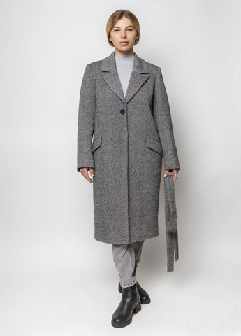 Жіноче пальто прямого крою з рельєфним втачним коміром "стійка". Потайна застібка на три гудзики, Також біля коміра розташований четвертий гудзик круглої форми. Кишені прорізні. Пальто виконане з преміального твіду, тканина приємна та м'яка, основний склад шерсть. Рукав класичний, приспущений плечовий шов, довжина рукава з плечовим швом 76 см. Довжина спинки від горловини 85 см. Пояс у комплекті.