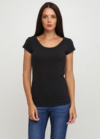 однотонна футболка з круглим вирізом горловини. На розмір М довжина виробу по спинці 63 см