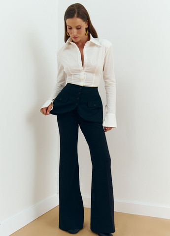 Кроп-топ із довгим рукавом-кльош, стилізований принтом у клітинку. Модель із v-вирізом, застібається на гудзики спереду. На спинці є еластична вставка-резинка. Цікавий акцент у вигляді зав'язки на спинці. Створюй образ зі штанами, джинсами, шортами чи спідницею з високою талією. Доповни лук солом'яною сумкою, капелюхом та сандалями чи босоніжками.