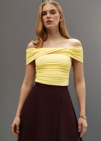 Топ із драпіруванням по бокам та відкритими плечима. Модель прилягаючого крою виконана із приємного до тіла трикотажу.