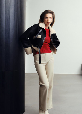 Штани із якісної матової екошкіри на замшевій основі. Модель вільного прямого крою з високою посадкою та бічними кишенями. Штани застібаються на гудзик та приховану блискавку спереду.
