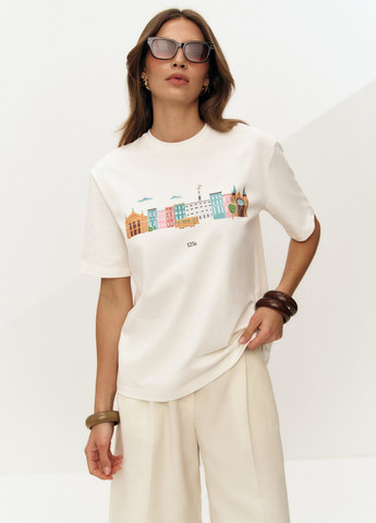 У мене зупиняється час, коли ти приїжджаєш до мене. Коли ти стоїш посеред Площі Ринок і відчуваєш просте і зрозуміле щастя – хіба не диво? Коли слухаєш вуличних музикантів біля Оперного і ні про що не думаєш. Блукай вузькими вуличками, закохуйся щоразу, як вперше. Я також відчуваю, як ти завжди залишаєш частинку себе тут, і зберігаю ці миті на фотоплівку. Пам’ятай, я завжди тут, готовий поділитися теплом і підтримкою. Коли здається, що все пропало – приїжджай без дзвінка у Львів. Одна футболка у ритмі твого міста - безліч варіантів образів. Авторський принт, актуальний oversize крій та спущена лінія плеча - така модель поєднується практично з будь-яким низом.
