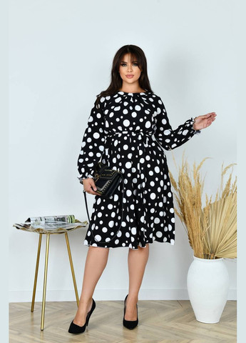 Сукня напівприлеглого силуету. Виконане з трикотажу джерсі. Тканина м'яка, еластична, приємна до тіла. Відмінно утримує форму (не меніться), легко розгладжується після прання, довго зберігає первозданний вигляд. Внизу центрального шва виконано шліц. Полиця асиметрична, в лівій частині виконана навісна кишеня. Рукав втічний, одношовний. Комір стійка-хомут. Орієнтовні виміри по готовому виробу: р. 50: ОГ - 100 см, ОТ - 96 см, ОС - 110 см, ширина плечей - 38 см, ширина рукава - 18 см, ширина манжети - 11 см; р. 52: ОГ - 104 см, ОТ - 102 см, ОС - 114 см, ширина плечей - 39 см, ширина рукава - 19 см, ширина манжети - 11 см; р. 54: ОГ - 108 см, ОТ - 108 см, ОС - 118 см, ширина плечей - 40 см, ширина рукава - 20 см, ширина манжети - 11,5 см; р. 56: ОГ - 114 см, ОТ - 112 см, ОС - 122 см, ширина плечей - 41 см, ширина рукава - 21 см, ширина манжети - 11,5 см; р. 58: ОГ - 120 см, ОТ - 118 см, ОС - 126 см, ширина плечей - 43 см, ширина рукава - 22 см, ширина манжети - 12 см; р. 60: ОГ – 124 см, ОТ – 122 см, ОС – 130 см, ширина плечей – 44 см, ширина рукава – 23 см, ширина манжети – 12 см. Довжина рукава: 53 см. Довжина виробу: р. 50, 52 – 106 см, р. 54, 56-109 см, р. 58, 60 – 113 см.