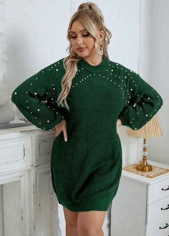 Жіночий світшот великих розмірів з круглим вирізом, оздоблений камінням. Виготовлений із нееластичної тканини. Круглий виріз. Довгі рукави із заниженою лінією плечей. Стандартна посадка та довжина, з розрізом по низу.