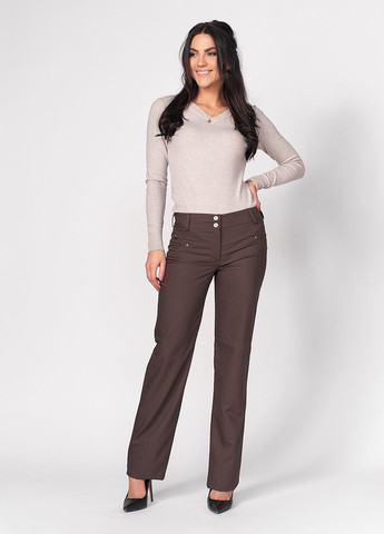 Жіночі штани прямого крою із середньою посадкою. Застібаються на блискавку та ґудзики. Мають функціональні кишені. Всесезон. Матеріал, з якого виготовлені штани - стрейч котон. Склад тканини: 98% котон, 2% еластан. Завдяки такому складу штани показують високі показники експлуатації.