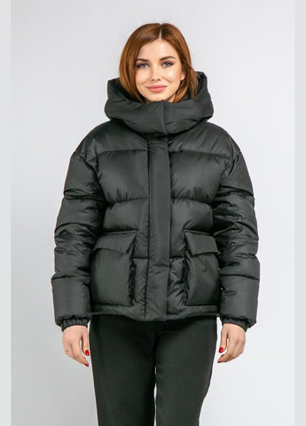 Зимова куртка з біо-пуха чорного кольору, стильна та тепла. Оснащена капюшоном для додаткового захисту від холоду та зручними кишенями. Застібається на молнію та кнопки, забезпечуючи комфорт і практичність.