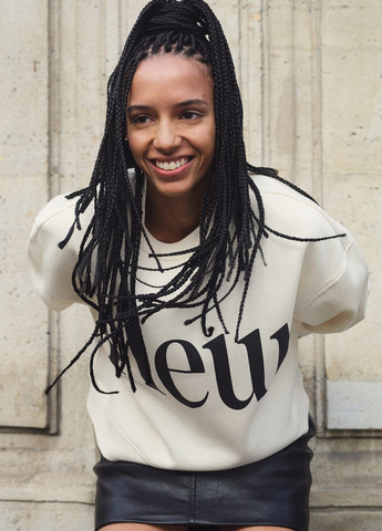 Світшот вільного крою із принтованої тканини. М'яка підкладка з начісом. Круглий виріз горловини, спущена лінія плеча, манжети та нижній край у рубчик. Для розміру XXS: напівобхват грудей 50 см, довжина 50 см.