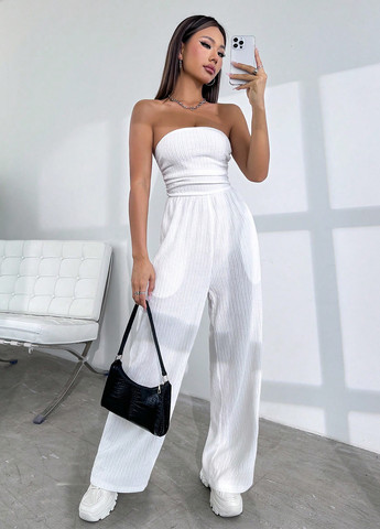Цей жіночий топ із білим однотонним кольором та напівпрозорим трикотажем. Він має дизайн без рукавів, виріз горловини та коротку довжину. Стиль без спини поєднується із зав'язками та прикрасами з бахромою, створюючи стильний та невимушений образ.