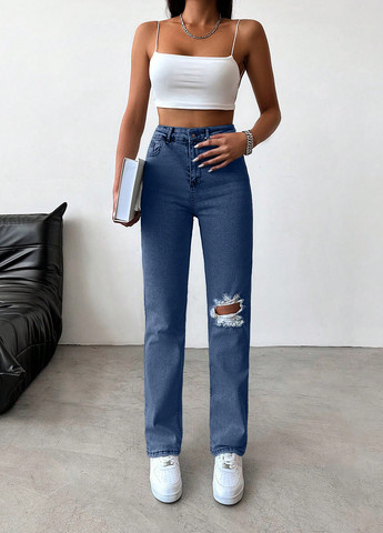 Колір Синій / Фасон Прямі / Висота посадки Висока талія / Декор Рваний / Сезонність Всесезон
