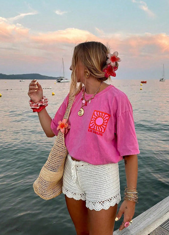 Колір Рожевий / Матеріал Поліестер, Трикотаж / Візерунок Малюнок / Стиль Кежуал