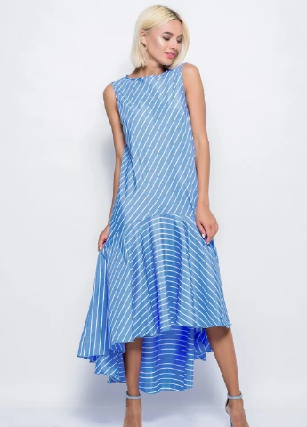 Літній сарафан виконаний з крепдешина з розкльошеним асиметричним вільним кроєм та заокругленими нижніми зрізами. Виріб без рукавів, міді довжини з зручними бічними кишенями і заглибленою горловиною-човником. Склад: 79% поліестер, 21% еластан. Напівобхват: Груди: S (51), M (51), L (51), XL (54), XXL (56), 3XL (58), 4XL (61), 5XL (64), Талія: S (54), M (54), L (57), XL (58), XXL (62), 3XL (64), 4XL (66), 5XL (68), Стегна: S (62), M (64), L (66), XL (67), XXL (69), 3XL (73), 4XL (75), 5XL (72-78*), Довжина виробу - 109-117*, Тканина: Низької еластичності.