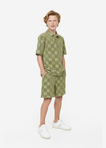 Шорти з бавовняної тканини з підтяжками, з регульованою талією на гумці, хибною гульфіковою застібкою на гудзику, непомітними бічними кишенями та хибною прорізною кишенею ззаду. Знімні регульовані підтяжки.