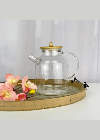 Заварювальний чайник Edenberg Заварювальний чайник Edenberg зроблений з боросилікатного скла, яке здатне витримувати високі температури. Зручний пристрій для швидкого приготування чаю - заварного, трав'яного, зі шматочками фруктів. Заварювальний чайник відмінно підійде для щоденного використання або для сервірування святкового столу, завдяки стильному і сучасному зовнішньому вигляду. Характеристики: Тип: чайник для заварювання Матеріал: боросилікатне скло Матеріал пружинки: нержавіюча сталь Матеріал кришки: бамбук Об'єм: 1100 мл, 1500 мл, 1700 мл Колір: прозорий Колір кришки: бежевий Виробник: Edenberg