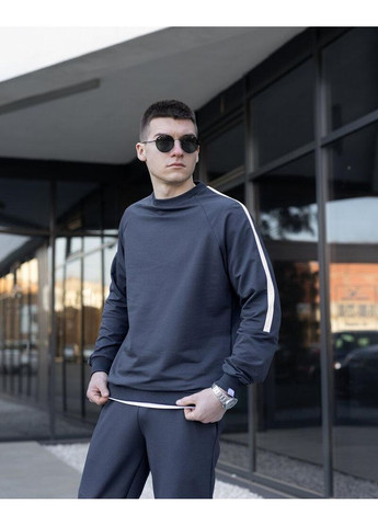 Світшот має крій реглан, що не сковує рухів, доповнений бежевими лампасами з білими кантами від горловини до ліктя. Манжети рукавів, горловина та низ виробу виконані з кашкорсе, що забезпечує зручну посадку. Штани оснащені поясом на резинці зі шнурком для регулювання об'єму, мають дві бокові кишені та манжети з кашкорсе для комфортної фіксації. Дизайн доповнюють бежеві лампаси з білими кантами від коліна до низу виробу. Завдяки універсальному крою та стриманому оформленню цей костюм стане відмінним вибором для активного повсякденного гардероба.
