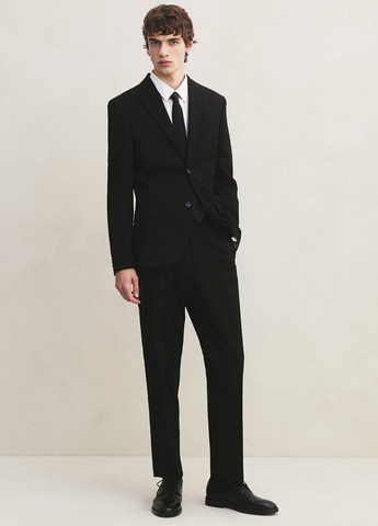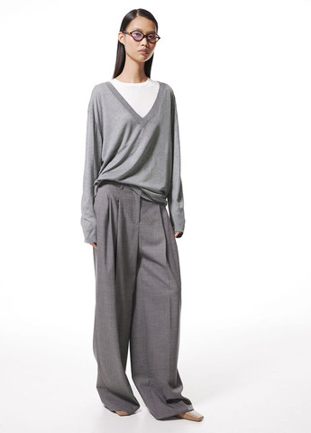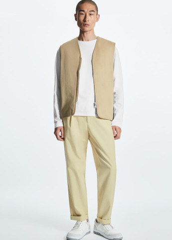 Світські штани від легкого льону. Вони мають довжину до щиколотки. Мають застібку на гачок і клапан на блискавці. Приталений крій. Бічні кишені та прорізні кишені ззаду. Завужені штани з шайбами. Тканина, виготовлена з іну, пропускає повітря та виглядає красиво незалежно від того, м’ята чи прасована. З часом він набуде більш тонкої текстури.