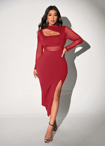 Майка жіноча великих розмірів SHEIN LUNE. Ця майка з круглим вирізом та стандартним нижнім краєм виготовлена з трикотажного полотна на основі поліестеру, віскози та еластану. Майка має класичний крій та середню еластичність. Модель напівпрозора. Тільки машинне прання.