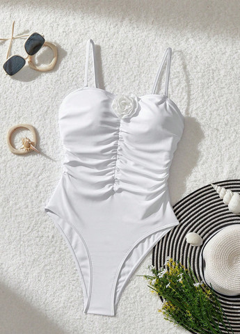 Цей літній жіночий купальник прикрашений рюшами. Він виконаний у милому та грайливому стилі з оборкою спереду, зав'язаною вузлом. Топ виконаний з високоеластичного трикотажу та має овальний виріз. Він без рукавів для максимального комфорту.