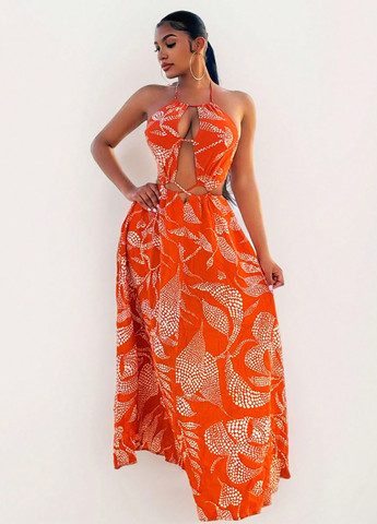 Колір Помаранчевий / Матеріал Віскоза / Фасон З відкритою спиною / Довжина виробу Довге / Стиль Пляжний