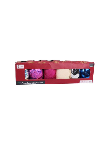Набір подарункових стрічок містить 6 яскравих кольорів (сріблястий, синій глянцеві; рожевий, бежевий матові; рожевий, сріблястий глітерні) , що додають індивідуальності будь-якій подарунковій упаковці. Стрічка ідеально підходить для пакування подарунків, прикрашання ялинок, вінків або творчих виробів. Вона легко скручується, створюючи об’ємну та привабливу текстуру, яка підкреслює унікальність кожного декору. Виготовлена з якісного поліаміду, стійкого до зношування. Розмір кожної стрічки 5 мм х 10 м. Виробник Німеччина