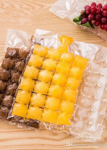 Пакети виготовлені з харчового поліетилену, призначені для заморожування кубиків льоду для різних напоїв. Пакети не пропускають запахи з холодильника та легкі у використанні. Комплектація: 10 пакетиків по 24 осередки. Розмір: 35х24 см.