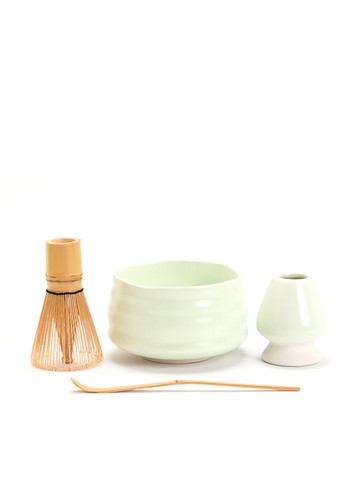 Матеріал: кераміка та бамбук. Список продуктів: 1 миска для матчу (12,5x7,5 см, 500 мл), 1 тримач Chasen (6,5x7,1 см), 1 бамбуковий вінчик (6x10 см), 1 бамбукова ложка (18,5x1 см), коробка 33*20 см. Відкрийте для себе сутність Японії: пориньте в безтурботність матчу. Побалуйте себе багатовіковою традицією, яка зачаровує почуття та переносить вас у безтурботні краєвиди Японії. Представляємо чарівний світ матчу, яскравого зеленого чаю, що втілює суть уважності, гармонії та неперевершеного смаку. Щоб покращити ваше враження від матчу, ми представляємо наш вишуканий японський набір для матчу чаю. Створений з точністю та елегантністю, цей ансамбль з чотирьох предметів включає витончені керамічні чаші, бамбуковий вінчик, традиційну бамбукову ложку та гладкий керамічний утримувач для віночка. Кожна деталь ретельно продумана, щоб покращити естетику вашого чайного столу та забезпечити бездоганне приготування вашого матчу. Якщо ви шукаєте момент спокою, заряд енергії або смак японської культури, насолоджуйтесь чарівністю матчу. Пориньте в багату історію та позачасову чарівність цього улюбленого напою, і нехай він перенесе вас у світ безтурботності та гармонії.