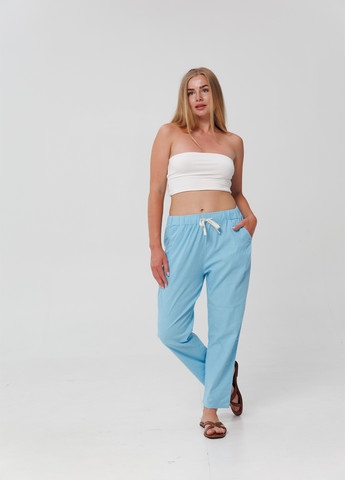 Колір Блакитний / Матеріал Льон / Фасон Завужені / Висота посадки Середня талія / Візерунок Однотонний