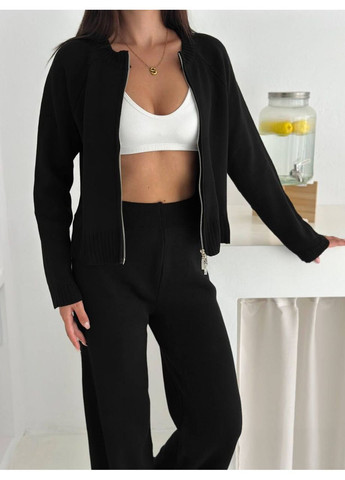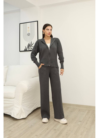 Комплект із в’язаної тканини створений для тих, хто цінує комфорт, стиль і практичність у повсякденному одязі. Він складається з кардигана на блискавці та широких брюк із високою посадкою, що забезпечують свободу рухів і підкреслюють невимушеність образу. Кардиган має прямий крій, акуратний комір і манжети з еластичною резинкою, завдяки чому він виглядає охайно та гармонійно сідає на фігуру. Широкі брюки з м’яким поясом-резинкою дарують комфорт протягом усього дня й чудово підходять як для дому, так і для прогулянок чи подорожей.