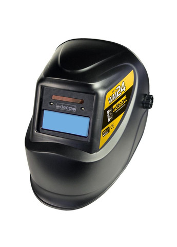 Маска з регулюванням DECA WM 24 відмінно захищає очі зварювальника від шкідливого впливу ультрафіолету. Вона є універсальною. Можна використовувати під час роботи з будь-яким апаратом. Принцип дії стандартний. Коли виникає іскра, скло автоматично затемнюється. Установки можна регулювати вручну. Маска оснащена автоматичним світлофільтром. Має велике оглядове вікно, завдяки чому зберігається гарний огляд. Виріб завжди готовий до роботи. Його використання підвищує безпеку та продуктивність зварювальника. Оптичний клас 1/1/1/3.