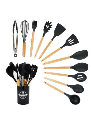 Набір кухонного приладдя "Kitchen Set" - це сучасний та стильний набір, що містить 12 різних кухонних інструментів (разом із підставкою), призначених для полегшення приготування страв на дому. Всі предмети набору виготовлені з високоякісного силікону, що надає їм міцності, довговічності та стійкості до подряпин та пошкоджень. Інструменти легко миються вручну або посудомийній машині, що робить обслуговування набору дуже зручним. Усі предмети зберігаються у силіконовій підставці, що допомагає зберігати їх упорядковано та під рукою. Підставка також легко миється та залишає вашу кухню чистою. Цей набір силіконового кухонного приладдя ідеально підходить для будь-яких видів кухонних завдань, від салатів до гарячих страв. Ви отримуєте все необхідне для приготування. Його сучасний стильний дизайн дозволить ідеально вписатися в будь-який інтер'єр кухні. Характеристики: Тип: набір кухарів / силіконові набори для кухні Матеріал: дерево, силікон Кількість предметів: 12 шт Підставка: є Підходить для антипригарного посуду: так Підходить для миття в посудомийній машині: так Термостійкість: до 230 градусів Комплектація: Пензлик Щипці Віночок Ложка з прорізом Половник Ложка для спагетті Сервірувальна ложка Лопатка з прорізом Лопатка – 2 шт Ложка для салату Підставка Упаковка